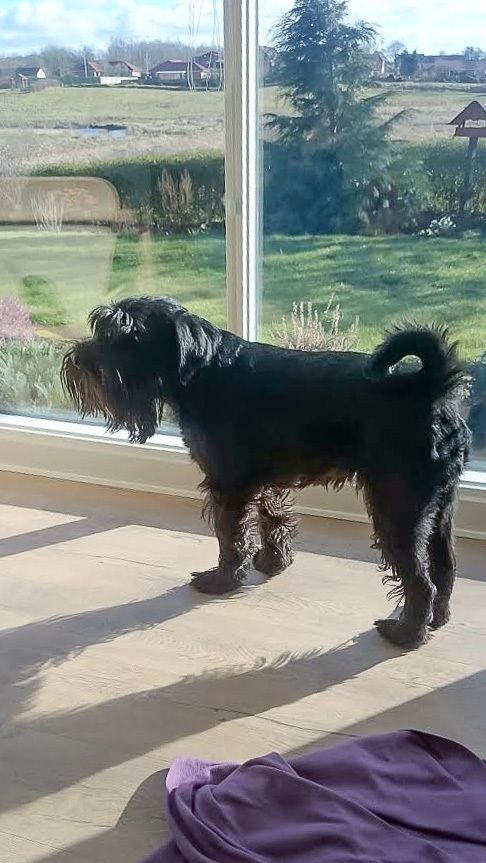 "Vores dejlige mellemschnauzer tæve på næsten 4 år, føler sig ikke tryg i vores hjem længere 😢 Vi har en dreng på 1,5 år, og hun kan simpelthen ikke rumme ham. Vi har truffet den beslutning at hun skal have et andet hjem, hvor der er masser af tid og kærlighed til hende.